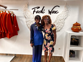 L’histoire de Fadi Wax Canada commence par un voyage en Côte d’Ivoire en décembre 2022 et un coup de cœur assuré entre deux dames ambitieuses qui nourrissent une vision commune pour la mode contemporaine. Il s'agit de Damala Fadilatou ( à gauche) et Reine Youan (à droite) la représentante de la franchise canadienne de Fadi Wax.